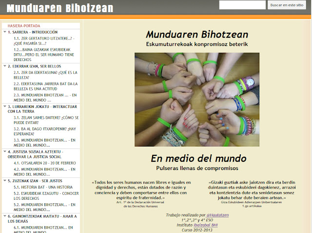 Se trata de una recopilación de materiales, fotos, actividades y trabajos finales basados en las unidades didácticas hechas por la campaña propuesta en la diócesis de Bilbao Munduaren Bihotzean.